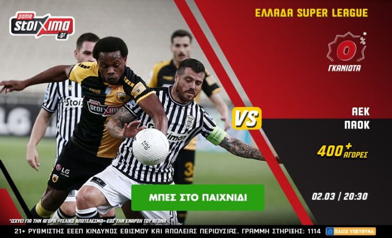 Από εκεί και πέρα, στο ποδοσφαιρικό πρόγραμμα της Τετάρτης (02/03) ξεχωρίζει το ντέρμπι ανάμεσα στην ΑΕΚ και τον ΠΑΟΚ. Ακόμα ένα ντέρμπι της Super League, το οποίο μπορείς να ζήσεις με 0% γκανιότα** και περισσότερες από 400 ειδικές αγορές στο Pamestoixima.gr. Με 0% γκανιότα**, πολλά special bets, αλλά και Live Streaming* είναι διαθέσιμη στο Pamestoixima.gr και η σπουδαία αναμέτρηση ανάμεσα στη Φιορεντίνα και τη Γιουβέντους για το Κύπελλο Ιταλίας! Θα σκοράρει ο Βλάχοβιτς κόντρα στην πρώην ομάδα του;