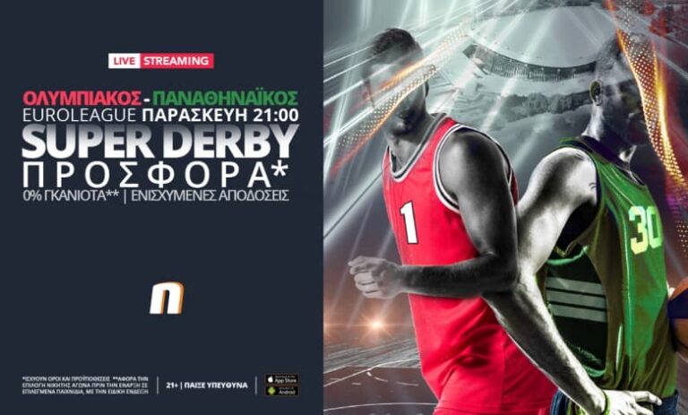 Ολυμπιακός – Παναθηναϊκός αποδόσεις: 1: 1,26 | 2: 4,00 – Over 156,5 πόντοι: 1,91 | Under 156,5 πόντοι: 1,86