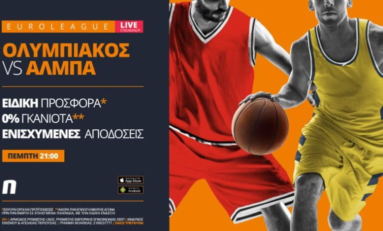 Ο μεγάλος αγώνας παίζει με σούπερ προσφορά* για τα μέλη, ενώ προβάλλεται σε Live Streaming. Παράλληλα, μπορεί κανείς να βρει γι’ αυτόν κορυφαία ειδικά στοιχήματα παικτών και ομάδων. Στη Novibet γράφεις τη δική σου ιστορία και στην Ευρωλίγκα!