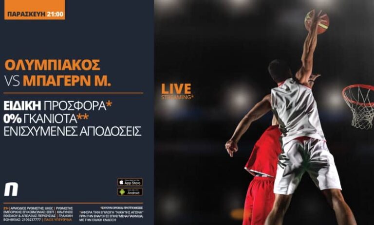 Ο μεγάλος αγώνας παίζει με Live Streaming*, συναρπαστική προσφορά* για όλα τα μέλη και κορυφαία ειδικά στοιχήματα παικτών και ομάδων.