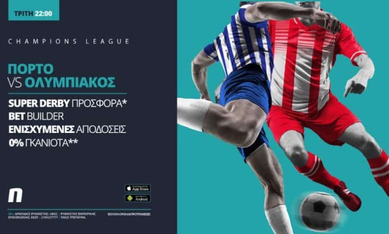 Ο μεγάλος αγώνας παίζει με Super Derby προσφορά*, κορυφαία ειδικά στοιχήματα, 600+ αγορές και ενισχυμένες αποδόσεις. Στη Novibet γράφεις τη δική σου ιστορία και στην Τσάμπιονς Λιγκ.