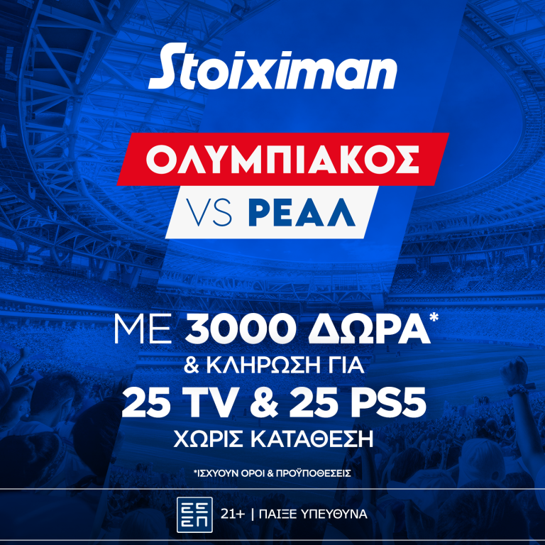 Προσφορά* γνωριμίας από τη Stoiximan με 3000 δώρα* χωρίς κατάθεση* και κλήρωση για ΤV 65’’ και PS5!